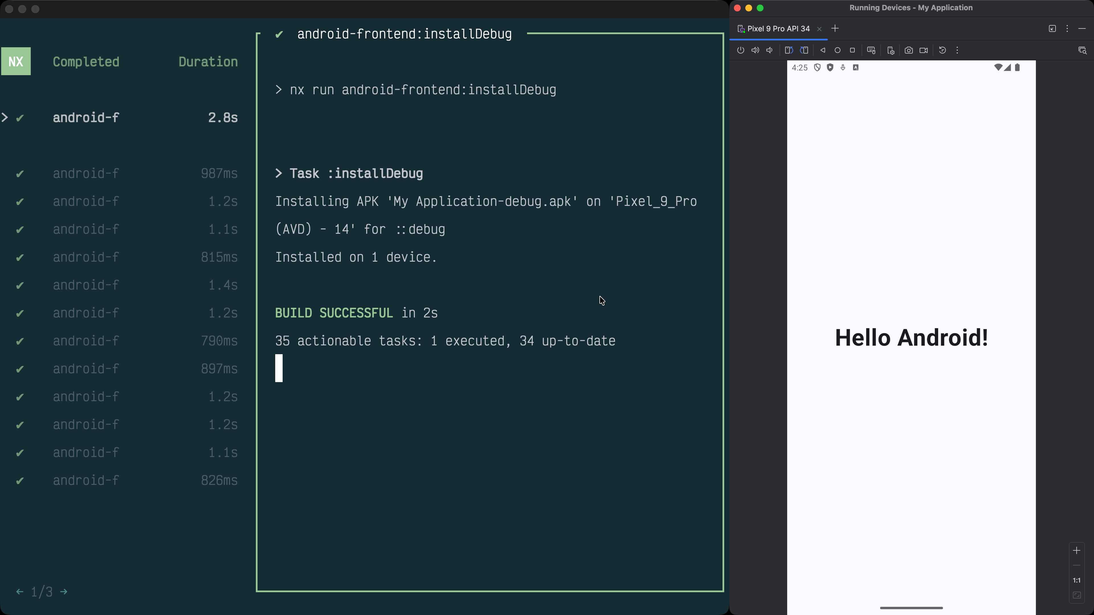 And that's it! It might seem not that impressive, but in the future, there could hypothetically be a dedicated Nx Android plugin that could handle starting your emulator and deploying your app. This could build on the Nx plugin for Gradle and really help Android developers work more closely with their colleagues on the web team. We got one last blog post this week for our Java developers, so be sure to check back tomorrow and we'll get our app shipped 🚀.